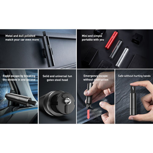 ممکن است در زمان های خطر، مثل ضربات شدید و آتش گرفتن ماشین و... به علت فشار یا ضربه ای که به بدنه ماشین وارد شده کمربند به خوبی عمل نکند و باز نشود. ساختار کمربندها نیز طوری است که به سختی می توان آن ها را پاره کرد. در نتیجه باید یک تیغ یا کاتر بسیار تیز داشته باشید که بتواند اینکار را برای شما انجام دهد. چکش اضطراری بیسوس Baseus Sharp Tool Safety Hammer CRSFH-0G در قسمت پایینی یک کاتر دارد که در بخشی U شکل قرار گرفته تا از برخورد احتمالی به دست هم جلوگیری کند. با این کاتر می توانید به راحتی کمربند را برش داده و به سادگی از خودرو خارج شوید.