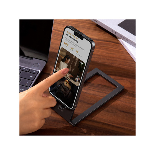 مجهز به مفصلهای متحرک جهت تنظیم بهترین زاویه دید دلخواه تا 360 درجه با قابلیت قرارگیری گوشی بصورت افقی و عمودی، طراحی مینی و تاشو: قابلیت جمع شدن و باز شدن بصورت کاملا تاشو جهت حمل آسان برای بیرون از منزل و مسافرت، همچنین اشغال نکردن فضای زیاد بر خلاف اکثر پایه نگهدارنده دیگر که قابلیت جمع شدن را ندارند. بسیار زیبا و باریک، خاص و ویژه برای نگهدارنده گوشی و تبلت روی میز جهت مطالعه، تماشای تلویزیون، فیلم، سریال و غیره، ساخته شده از ترکیب آلیاژ آلومینیوم+سیلیکون با کیفیت بالا، مقاوم در برابر ضربه، فشار و اکسید شدن، بهرهگیری از پدهای ضربه گیر سیلیکونی جهت جلوگیری از ایجاد خط و خش بر روی گوشی، مجهز به پایه سیلیکونی در پایین هولدر جهت قرارگیری محکم و ضد لغزش بر روی سطوح صاف، مهار کننده قوی جهت نگهداری محکم گوشی و تبلت، سازگار با تمامی گوشیها تا سایز 6.7 اینچ و تبلتهای زیر 12.9 اینچ، دارای شیار قسمت پایین نگهدارنده برای اتصال کابل شارژ به گوشی، هولدر ویژه برای کارکرد راحت با تبلتهای سنگین وزن جهت جلوگیری از خستگی دست بدلیل وزن زیاد تبلتها، رفع و از بین بردن آسیبهای استفاده بیش از حد تبلت مانند کمر درد، آسیب رساندن به چشم، گردن و غیره است.